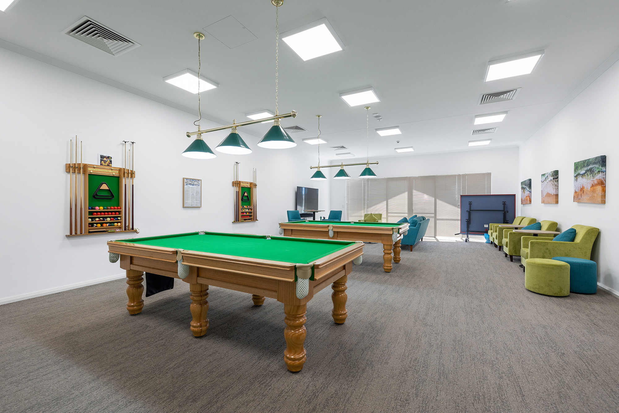 - Central Hub: The heart of the village, featuring dining, entertainment, arts and crafts, relaxation areas, library, administration offices, and spacious verandahs overlooking beautifully landscaped bowling greens.
